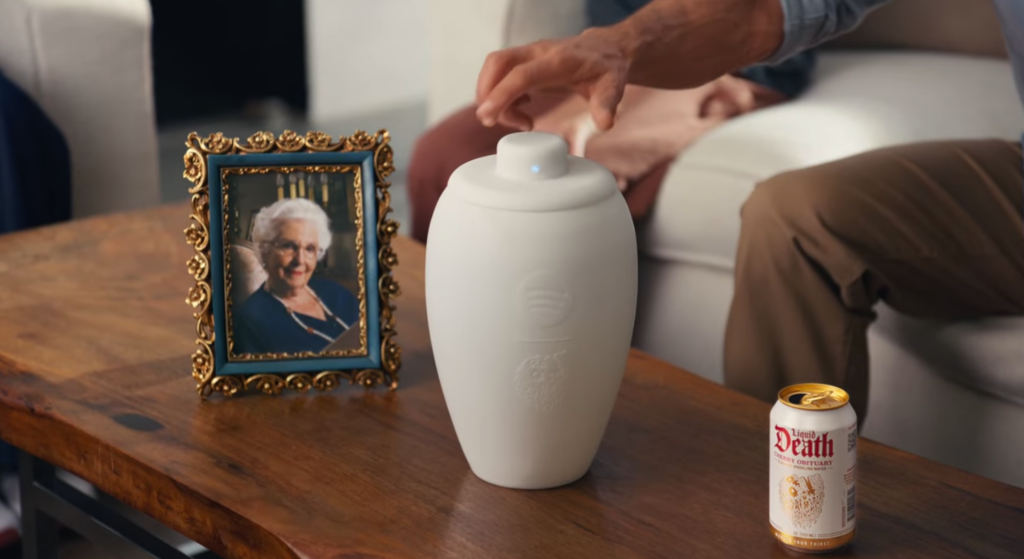 A inclinação da já icônica marca de água mineral em lata Liquid Death por pegadinhas e ações absurdas parece não ter limites. E desta vez, a marca tem o sensato Spotify como parceiro. A dupla lançou uma urna que chamam de “a mais recente inovação para quem está morto” e afirmam também que ela “redefinirá a experiência da vida após a morte“.