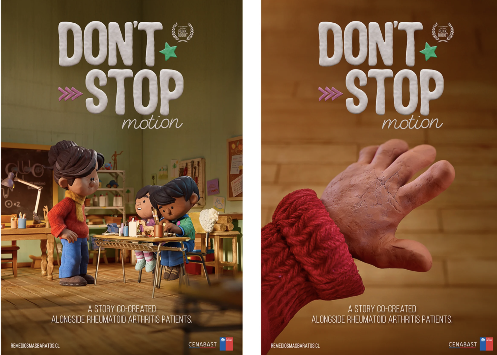 O Governo do Chile, em parceria com a agência VML Buenos Aires e a produtora Punk Robot, vencedora do Oscar por trás de “Bear Story”, lançaram o projeto “Don’t Stop Motion” – um curta-metragem de animação atual e comovente que coloca o poder criativo diretamente nas mãos de pacientes com artrite reumatoide. O filme utiliza animação em stop motion e terapia com argila para contar uma história de resiliência, criatividade e a importância de nunca desistir – em um “processo cinematográfico transformado em terapia.“