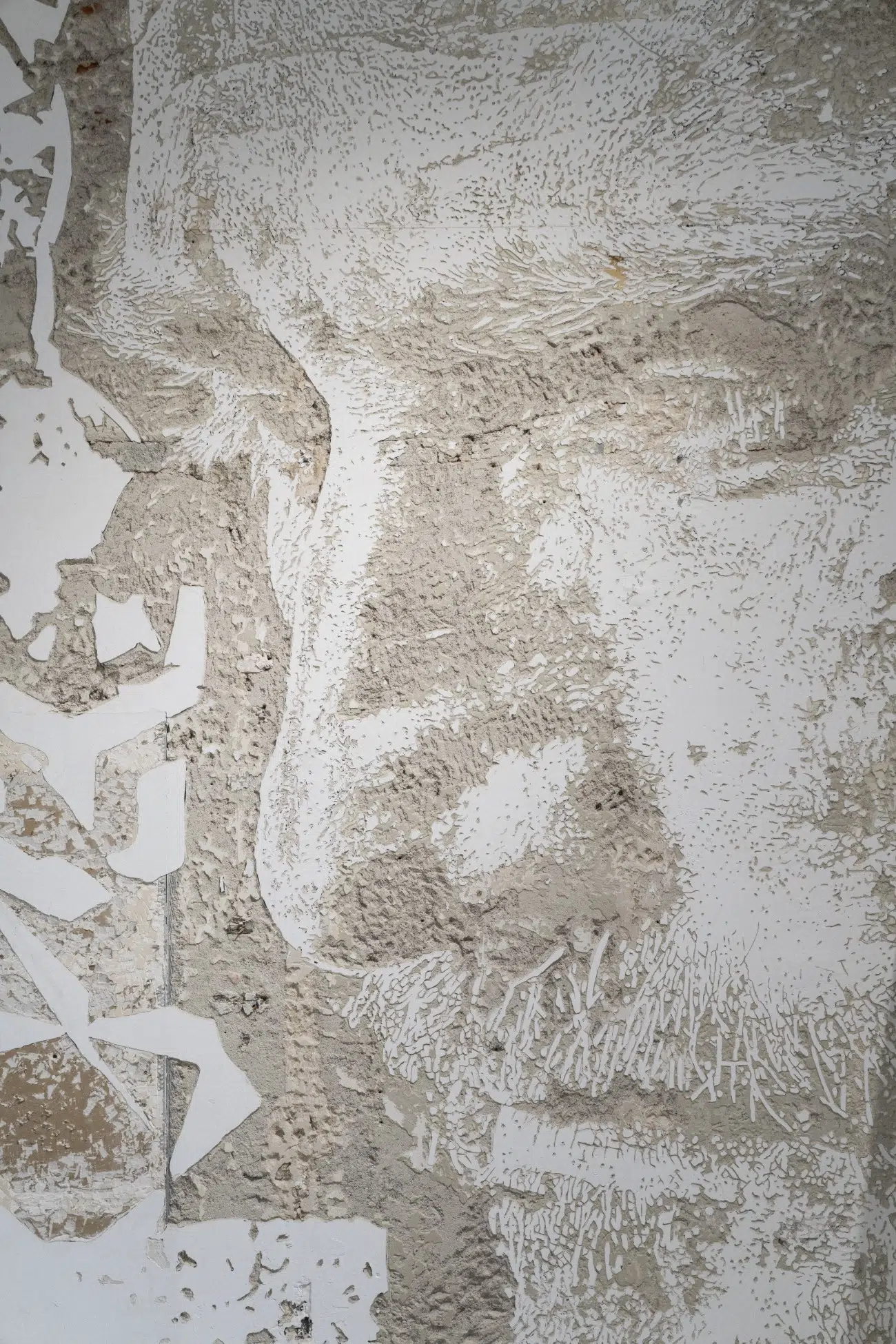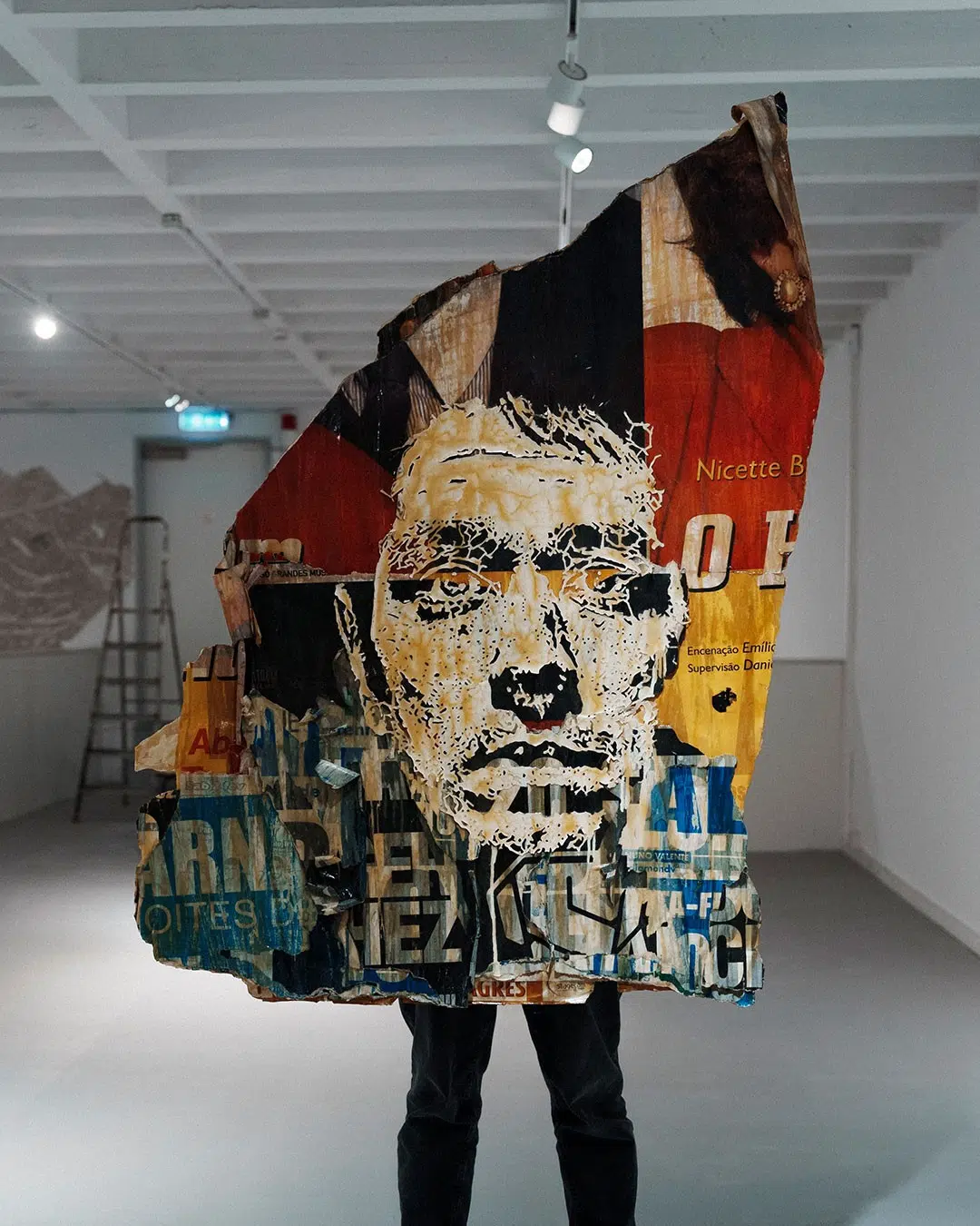 O título da exposição, Strata, é apropriado, pois é o plural de “stratum”. Esta palavra, que é definida como “uma das partes ou camadas em que algo é separado“, resume perfeitamente o trabalho de Vhils. Seja cortando camadas de um outdoor ou esculpindo seções de gesso, seu trabalho é uma investigação que descasca os níveis da cidade. Vale a pena conhecer aqui mais sobre o artista.