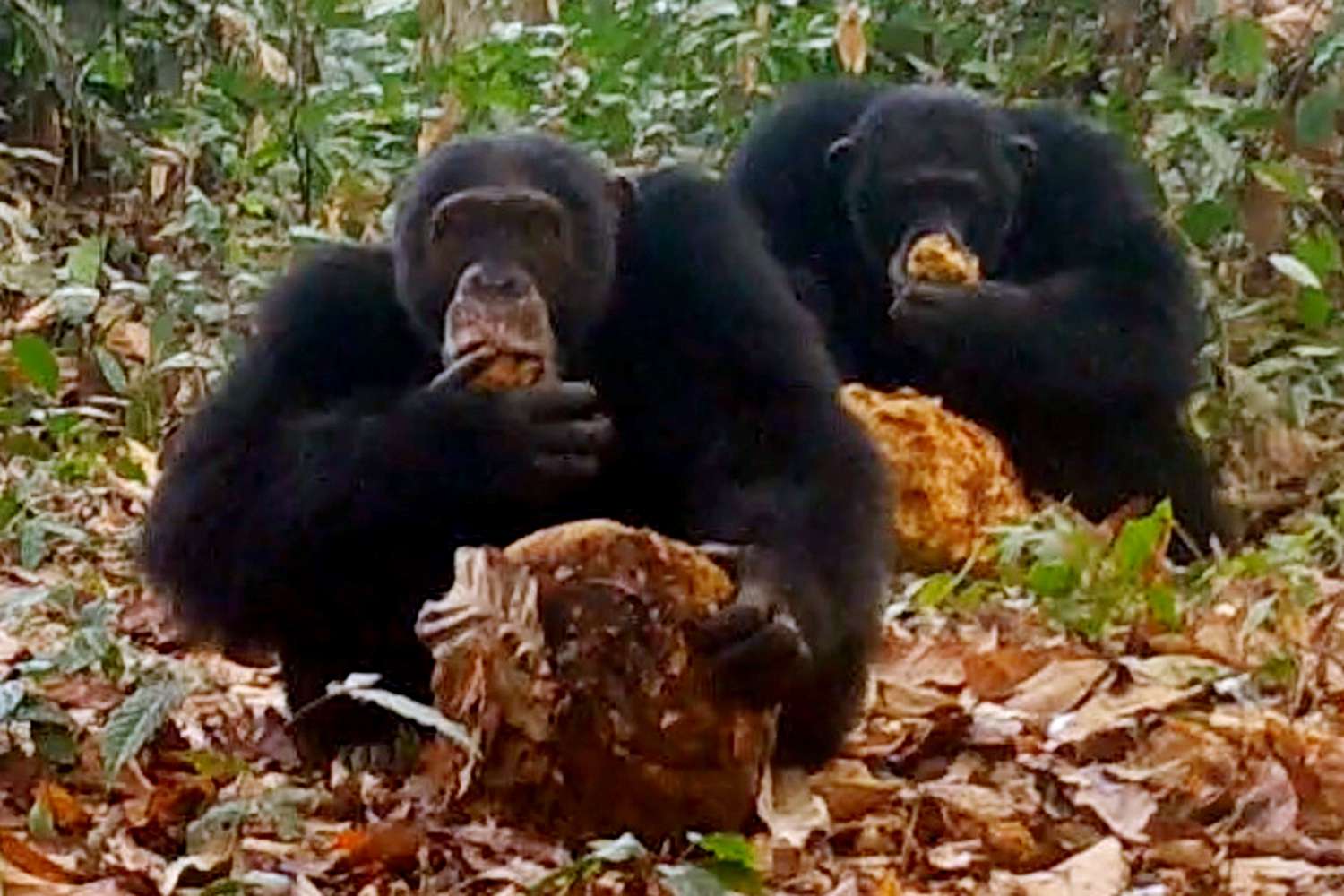 Câmeras ativadas por movimento capturaram chimpanzés reunidos ao redor das árvores de fruta-pão africana, mastigando alegremente a fruta e passando adiante como se estivessem compartilhando uma garrafa de vinho em uma festa. Testes posteriores revelaram que a fruta continha etanol — o mesmo álcool encontrado na cerveja e no vinho — com níveis que chegavam a 0,61% ABV (teor alcoólico por volume). Embora seja uma quantidade modesta em comparação com o que os humanos bebem, pode aumentar com o tempo, especialmente considerando que 60% a 85% da dieta de um chimpanzé é composta de frutas.