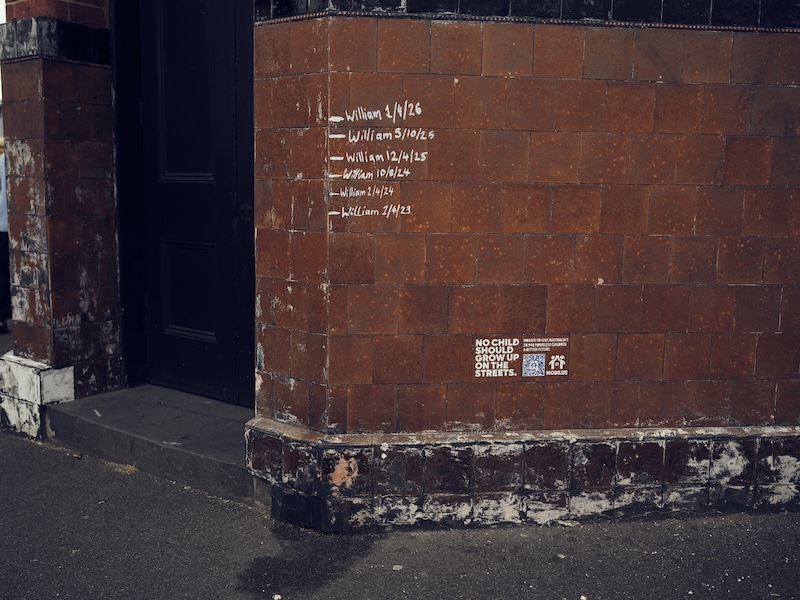 Um código QR na parte inferior de cada gráfico direciona os transeuntes para uma página da We Are Mobilise, onde podem doar fundos para apoiar crianças e suas famílias em situação de rua em toda a Austrália. Das 28.948 crianças e seus pais que atualmente não têm um lar estável, uma pequena parcela está dormindo na rua. O restante está escondido, vivendo em barracas, carros, dormindo no sofá de amigos ou em lares de acolhimento.