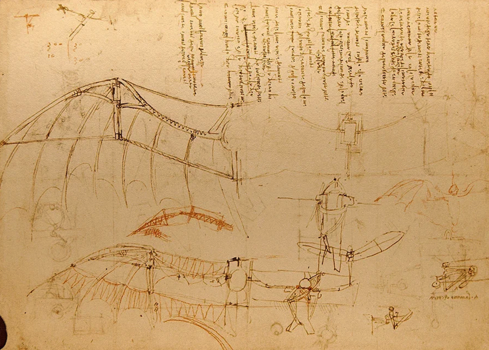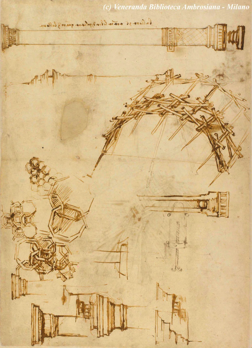 Abrangendo mais de 40 anos de produção, o Codex Atlanticus de da Vinci contém 1.119 páginas dedicadas a inúmeros tópicos, incluindo armamento, instrumentos musicais, matemática, botânica e voo. No final do século XVI, o escultor milanês Pompei Leoni recuperou uma série desses cadernos e posteriormente os reuniu em dois grandes volumes: o primeiro com foco em temas técnico-científicos, e o segundo dedicado à anatomia e a assuntos artísticos.