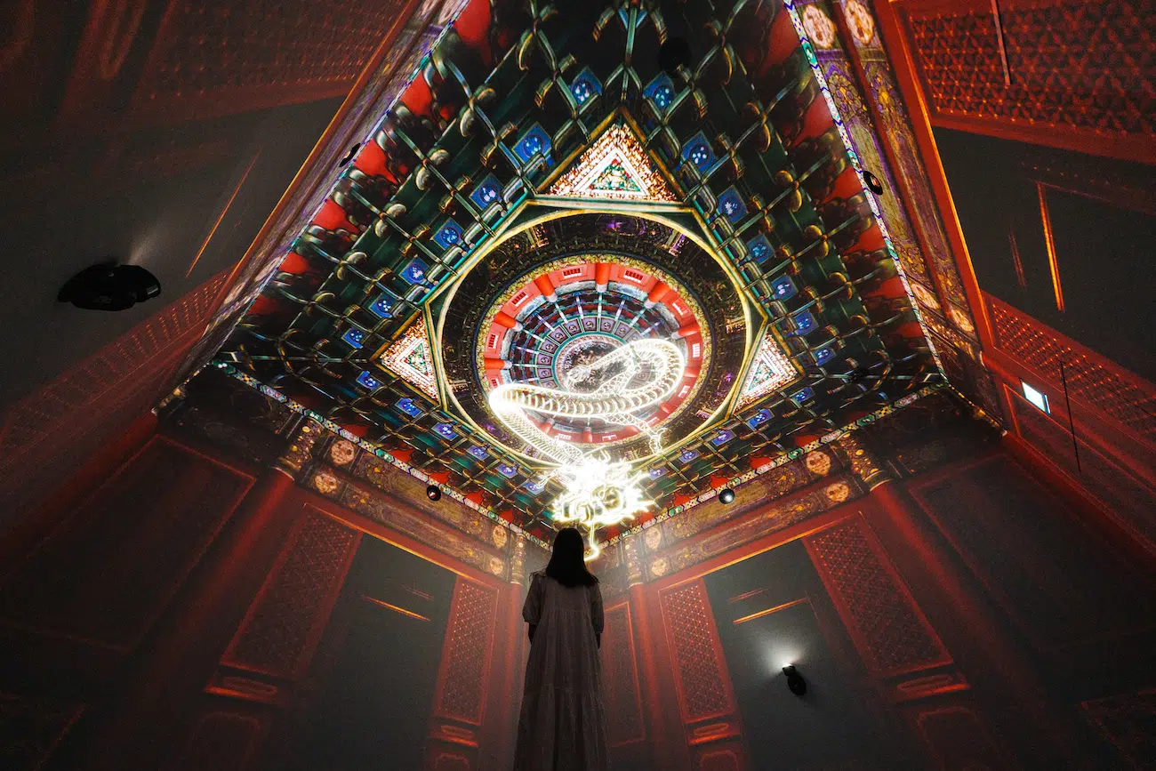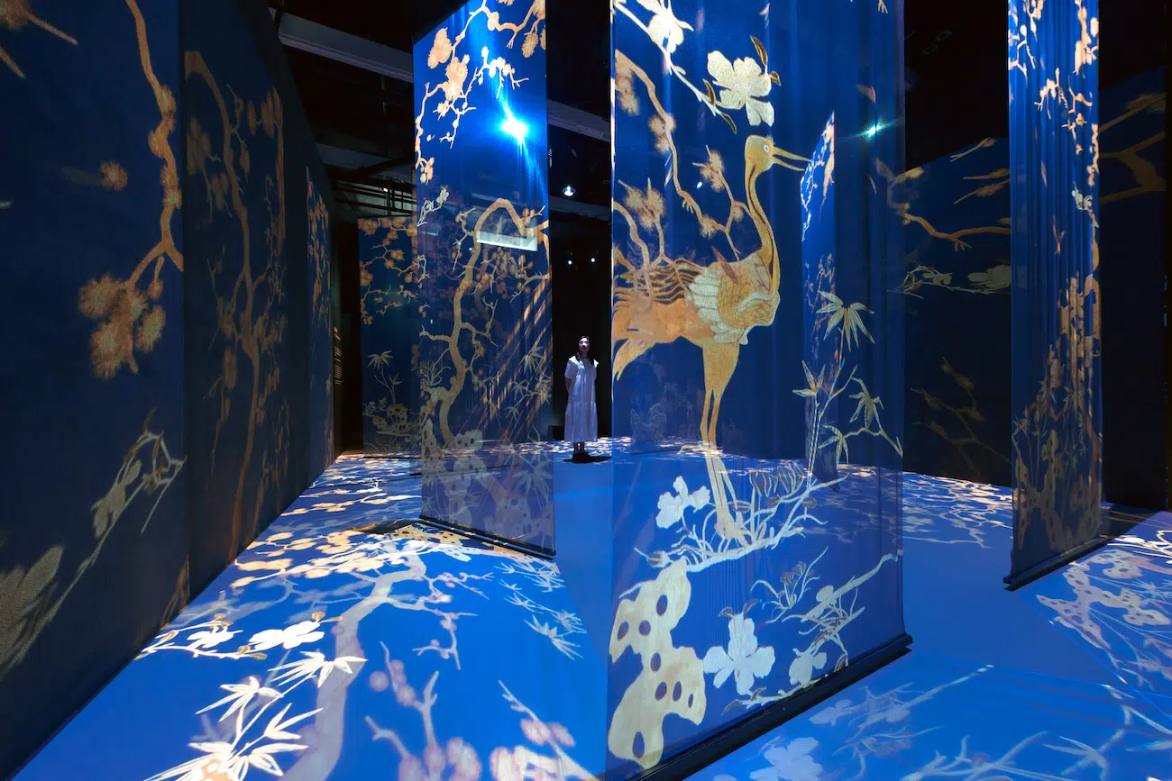 Intitulada “The Ways in Patterns” (Os Caminhos dos Padrões), a exposição reimagina a arquitetura, a cerâmica e os tecidos bordados do museu em sete espaços distintos. Cada um desses ambientes foi projetado com o auxílio da tecnologia digital, animando tudo, desde um dragão serpenteando por nuvens rodopiantes até um gato saltando avidamente por um pátio aberto. As paredes repentinamente se tornam telas vivas, revelando uma nova dimensão aos padrões históricos que, se deixados inteiramente estáticos, de outra forma se perderiam. Conheça aqui mais sobre a exposição.