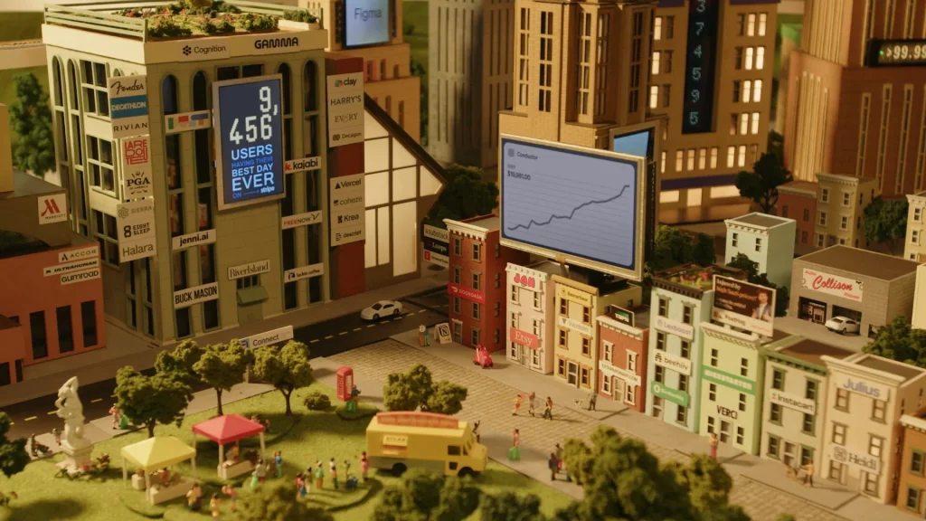 Nessa ação para as datas de Black Friday, Cyber Monday e Giving Tuesday, a Stripe criou a homenagem definitiva para a máquina invisível que movimenta dinheiro pelo mundo – uma cidade em miniatura que encapsula a magnitude do capital. Operada por uma equipe de modelistas, animadores e artesãos 24 horas por dia, 7 dias por semana durante o período, este diorama vivo e pulsante eleva o nível do marketing criativo. Bem legal.