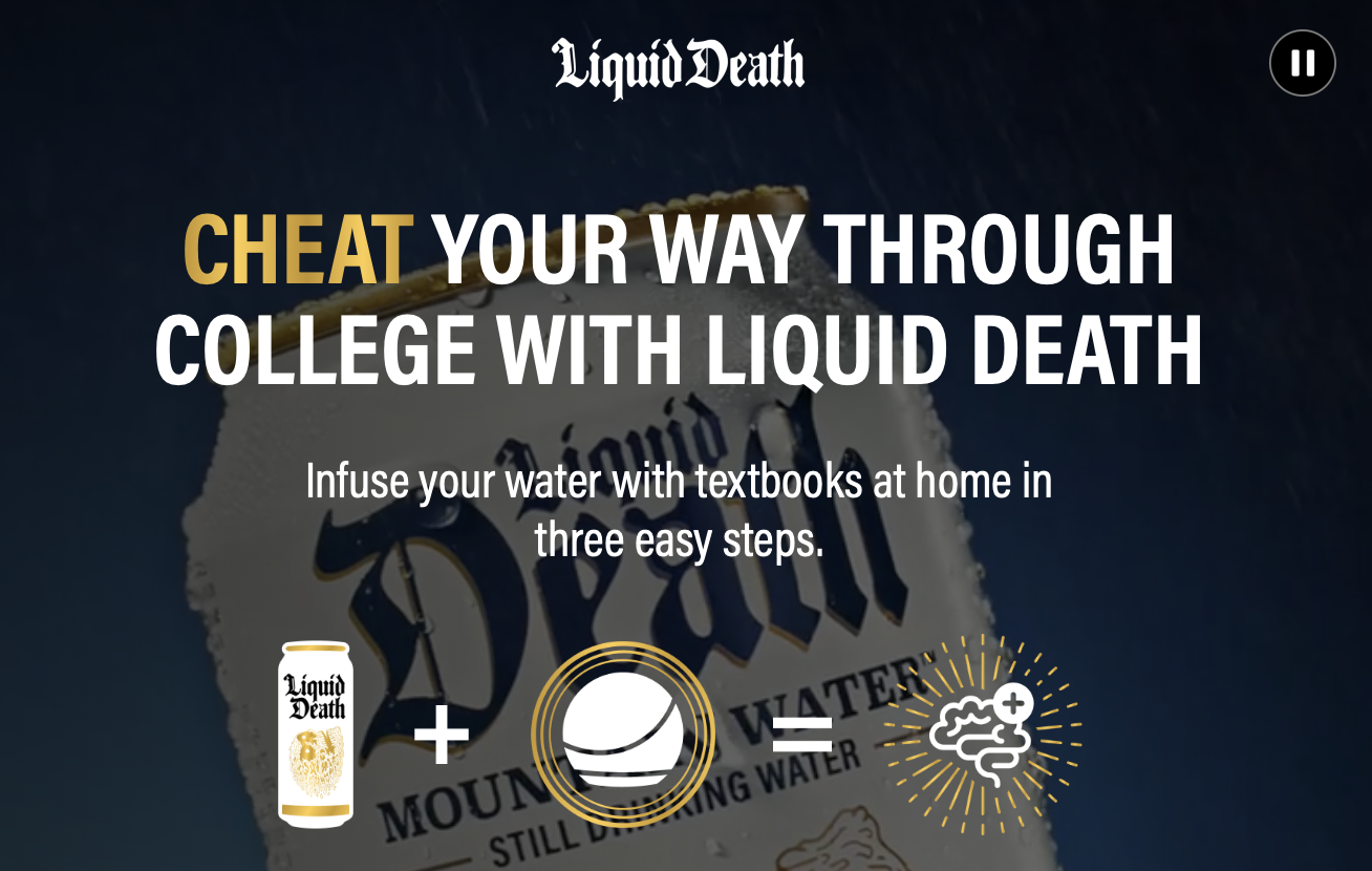 Não é novidade que a maioria dos jovens acha que estudar para as provas é muito chato. Mas a marca ícone de água mineral em lata Liquid Death resolveu ajudar a salvar os jovens americanos que estão retornando para as aulas. O anunciante, famoso por suas ideias provocativas, se uniu ao Laboratório de Inovação de Marca da Amazon Ads para criar a Certified Smarter Water, que auxilia alunos a “beber conhecimento” (na verdade, colar) para os exames na escola.