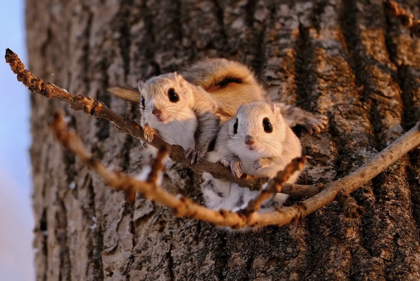 Com pelo cinza macio, enormes olhos caricaturais e patas minúsculas, o esquilo-voador é tão adorável que se tornou um símbolo da cultura kawaii (fofo) no Japão. Ilustrações da criatura aparecem até no cartão do metrô de Sapporo. Sasaki gosta particularmente de capturar essas criaturas, em sua maioria noturnas, colocando suas cabecinhas para dentro e para fora de tocas de árvores.