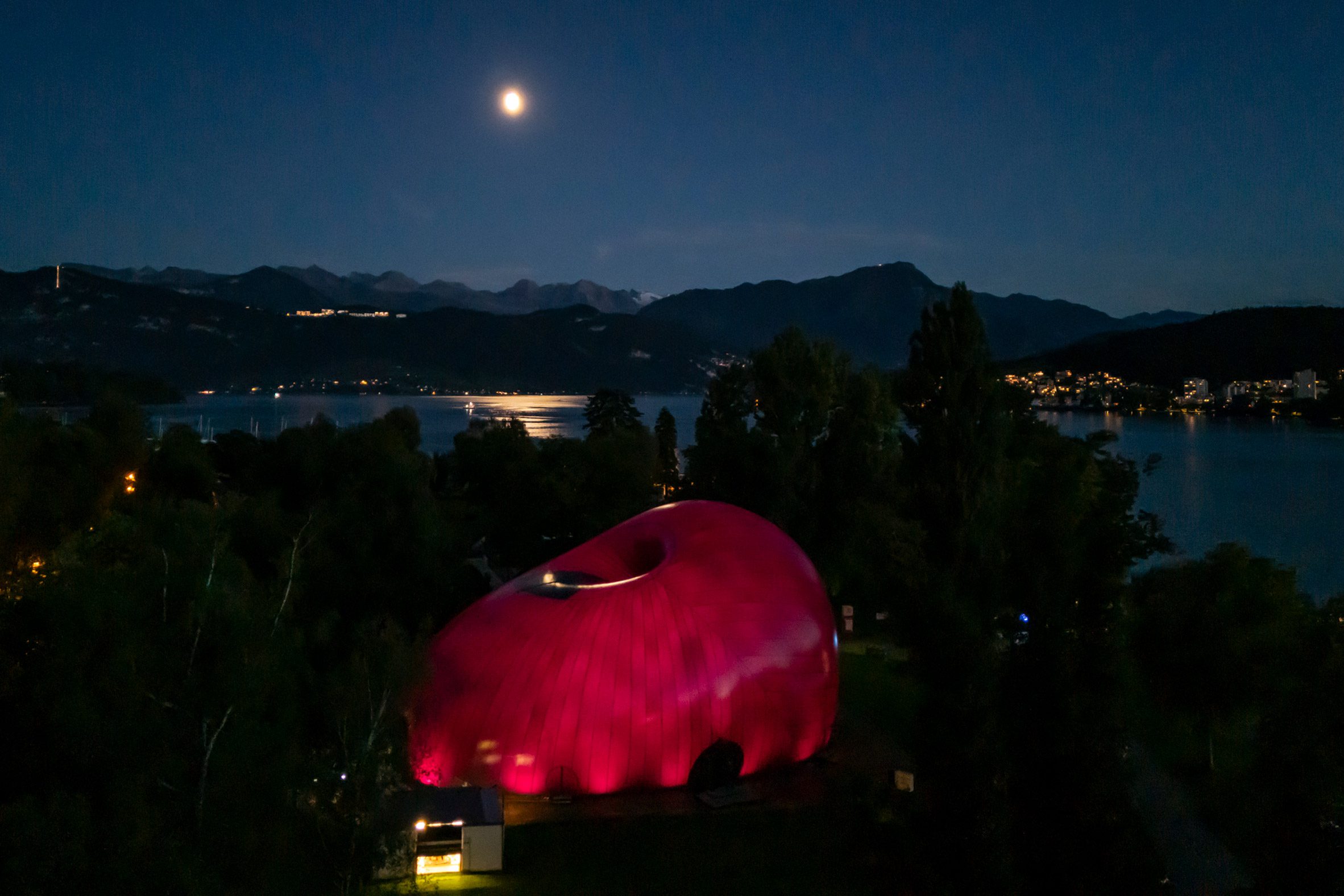 Originalmente criada em 2013, após o terremoto de Fukushima, esta estrutura inflável foi projetada como um símbolo de esperança, com sua forma temporária e etérea compartilhando e representando música, luz e resiliência humana. Para sua estreia na Suíça em 2025, o evento oferece onze dias de concertos que variam de música clássica e folk a jazz e pop, funcionando simultaneamente como uma instalação escultural, um local de espetáculos e um espaço expositivo imersivo.