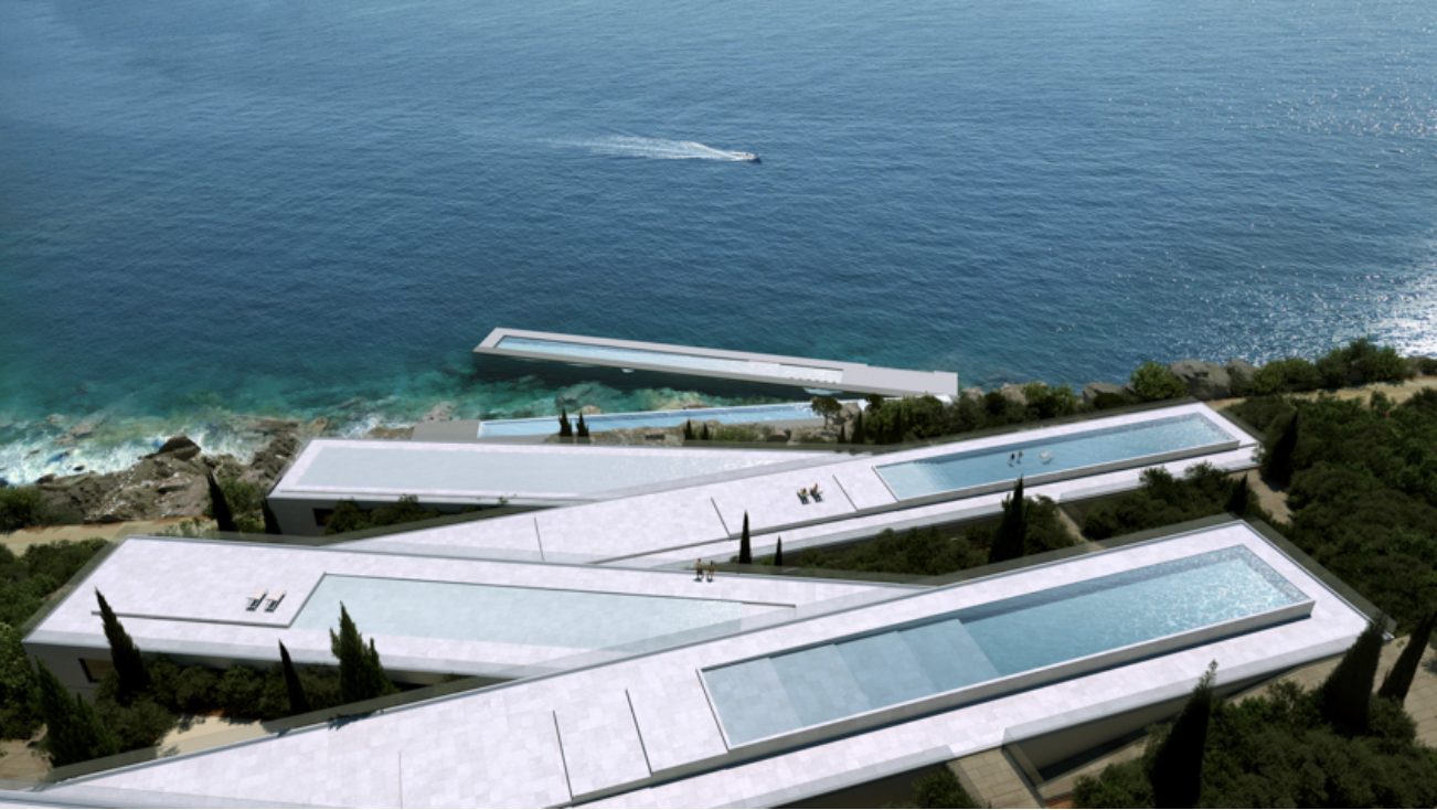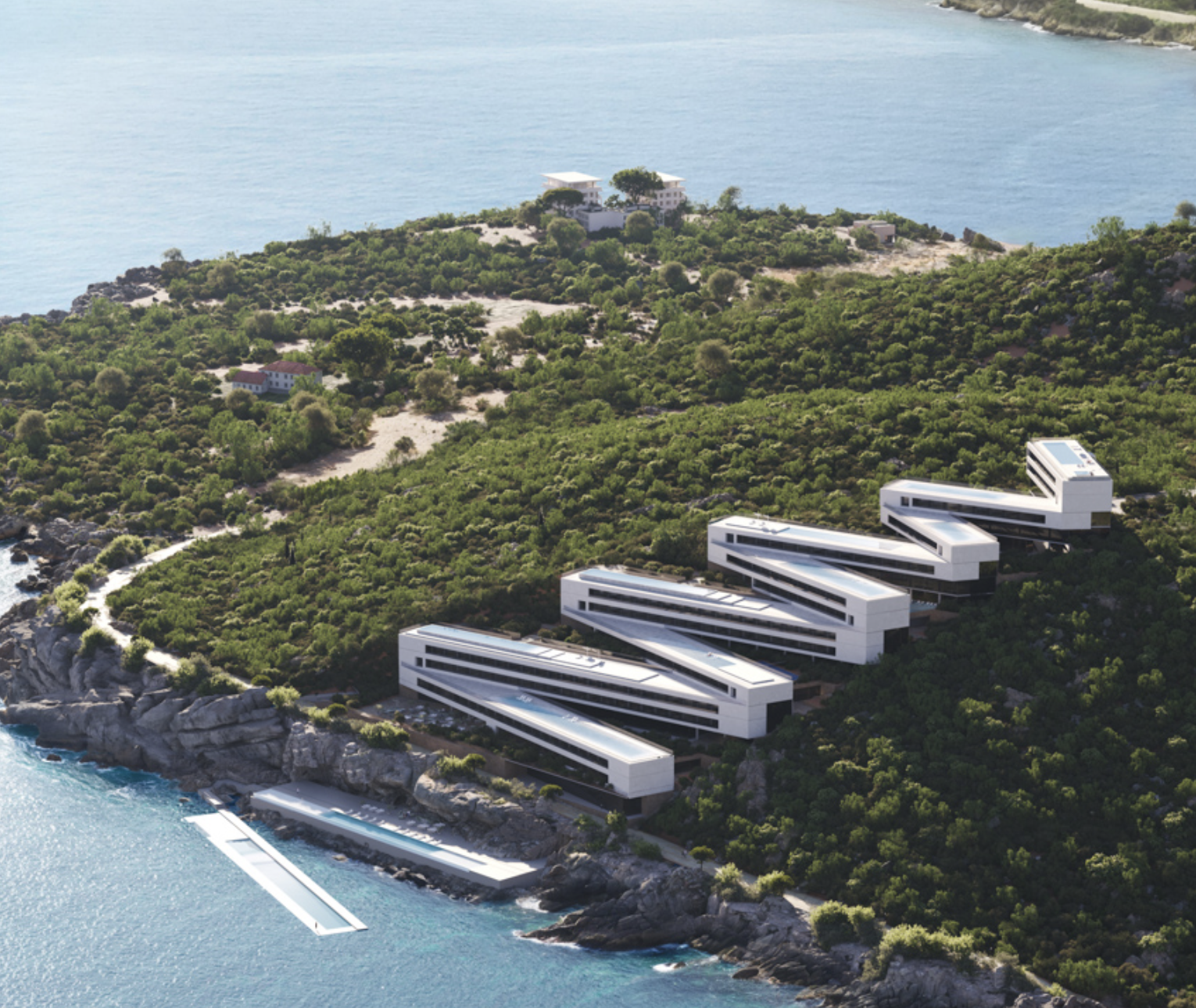 Localizado ao longo da costa de Himare, na Albânia, o ZigZag Resort foi projetado pela JA Joubert Architecture em colaboração com a UNS Architects. O resort adota uma configuração linear em zigue-zague que acompanha a topografia existente, mantendo as vistas panorâmicas do local e minimizando a alteração da paisagem. A estratégia formal permite que cada unidade se integre ao entorno sem obstruir as demais, preservando a continuidade visual e ambiental.