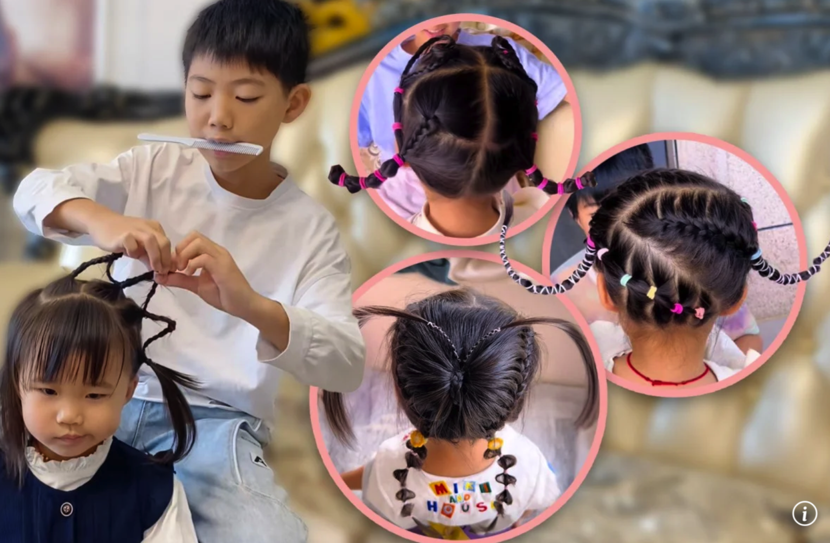 Guiado pela sua imaginação e munido de uma variedade de elásticos de cabelo coloridos e uma caixa de acessórios fofos, o irmão mais velho dedicado começa a trabalhar. Sua irmãzinha senta pacientemente, claramente adorando a sessão diária de mimos, enquanto ele torce e trança o cabelo dela em criações cada vez mais elaboradas. Saiba mais aqui sobre a dupla.