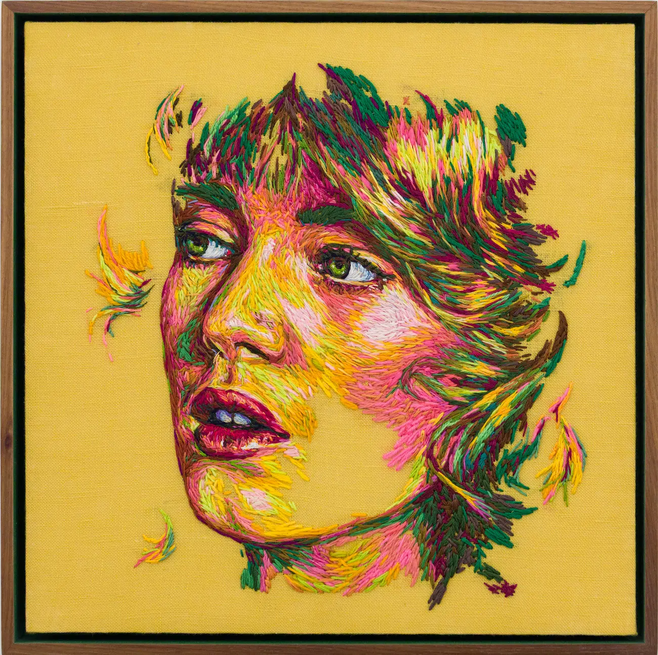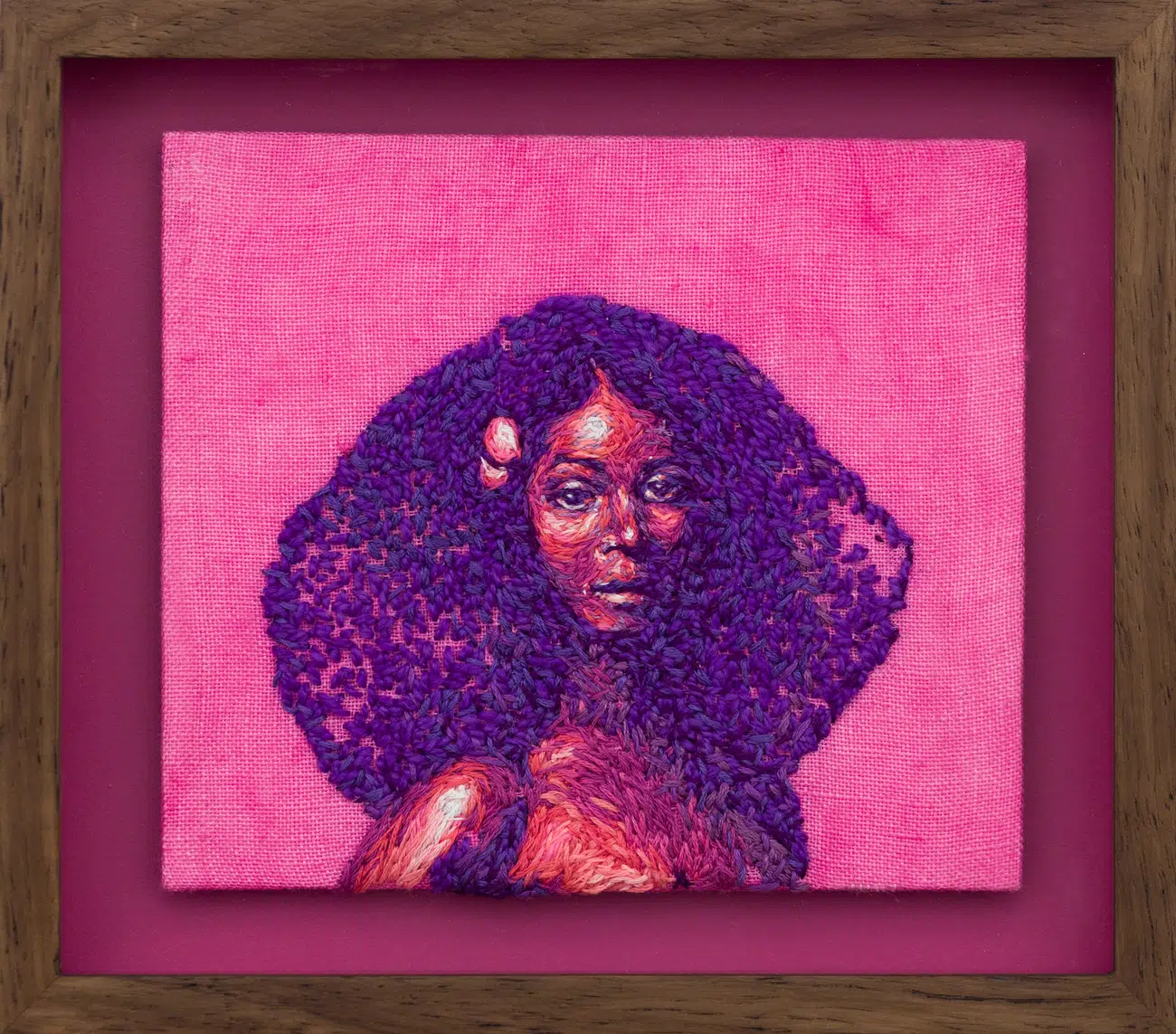“Não me entenda mal — nem tudo é assim“, revela Clough. “Mas minhas ideias preconcebidas sobre ela e sobre como as coisas eram no passado eram muito equivocadas.” Não demorou muito para que a artista se apegasse aos muitos anúncios e editoriais da revista, o que a levou a traduzir o visual dos anos 1970 em bordados vibrantes.