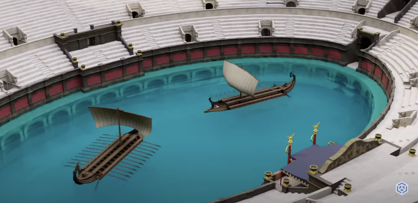 Além disso, a equipe se aprofunda em dois pontos que comprovam o quão avançado era o Coliseu. A primeira é a naumachia, ou batalhas navais encenadas no Coliseu. Para dar vida a elas, com barcos e tudo, a arena foi transformada em um lago com água abastecida por aquedutos próximos e drenada por um sistema de canais conectado aos esgotos da cidade. A outra é o velário, um amplo toldo retrátil feito de 240 partes separadas que protegia os visitantes do sol forte, já que ficar ali por horas a fio sob o sol teria sido desagradável. Vale muito conferir.