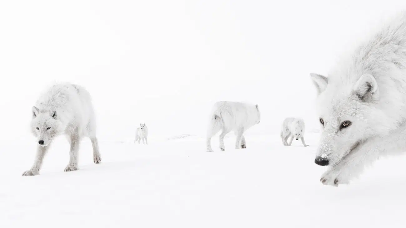 Seja Donglin escalando um pico rochoso para fotografar o lêmure ou Kat Zhou retornando a um ponto de mergulho antes de avistar uma polvo fêmea dando a própria vida por seus filhotes, cada fotógrafo está disposto a se sacrificar para obter a imagem que busca. O fotógrafo Amit Eshel, vencedor da categoria Vida Selvagem Terrestre, também entende de sacrifício. Levou dois anos para que ele avistasse lobos do Ártico nos confins do Canadá.