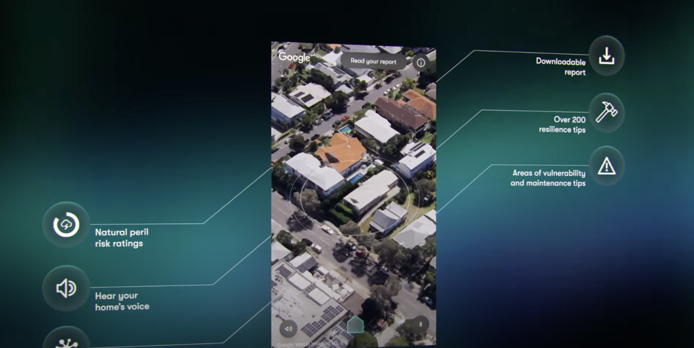 O Haven utiliza dados de propriedade, localização, clima e risco de desastres naturais, permitindo que qualquer proprietário na Austrália insira seu endereço, veja seus riscos climáticos e receba um vídeo personalizado e um relatório de resiliência para download para sua casa. É a primeira vez na Austrália que fontes de dados especializadas se unem para abordar a resiliência, auxiliando os proprietários com conhecimento e ferramentas diante do agravamento do clima extremo. Ótimo exemplo.