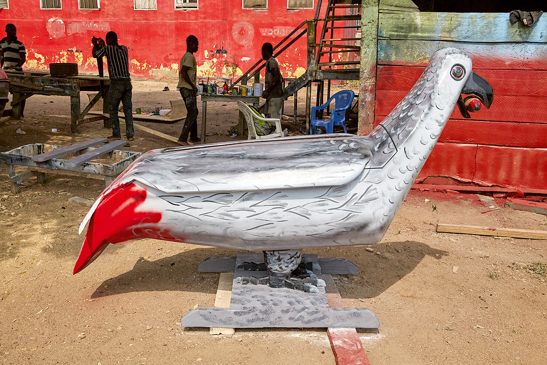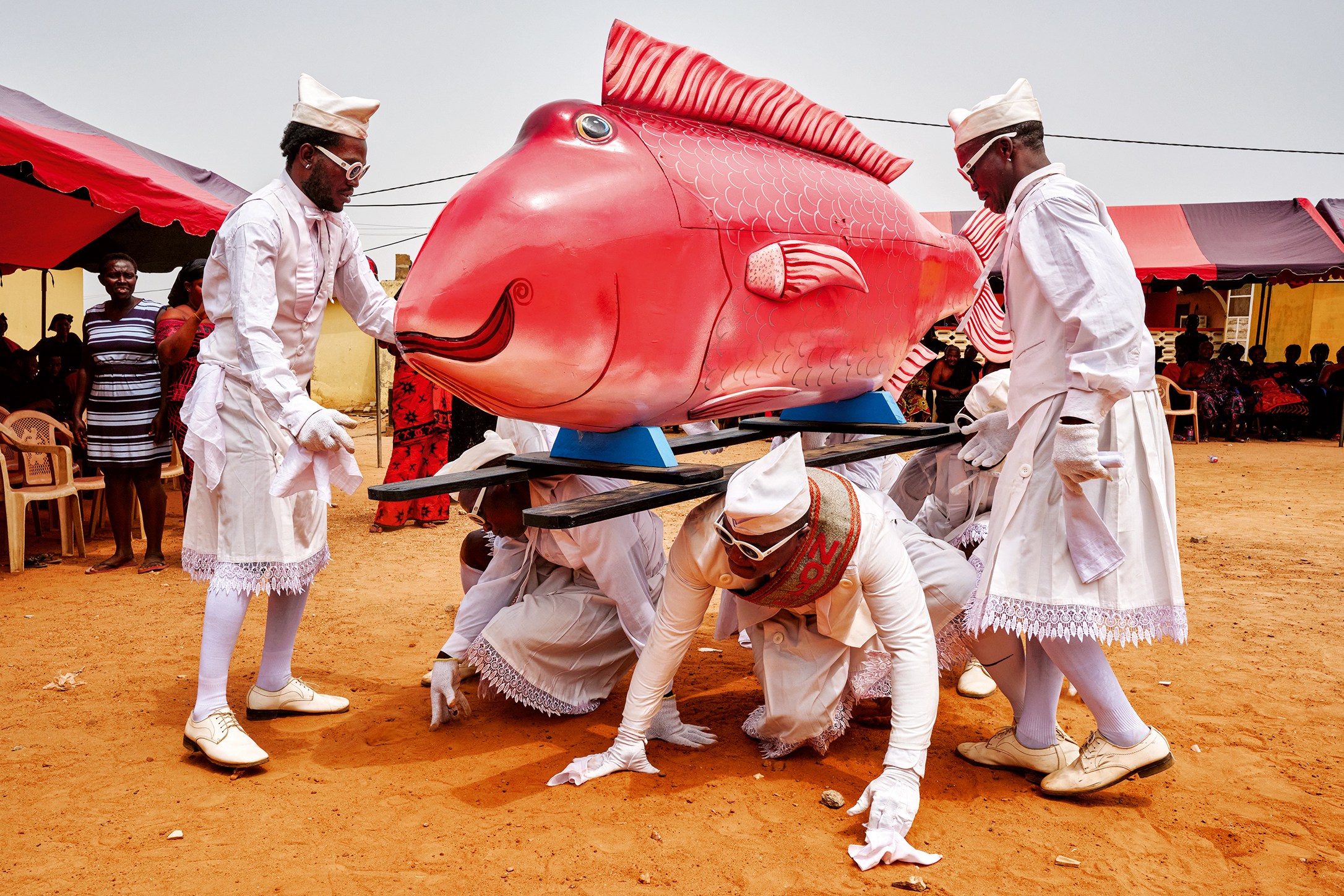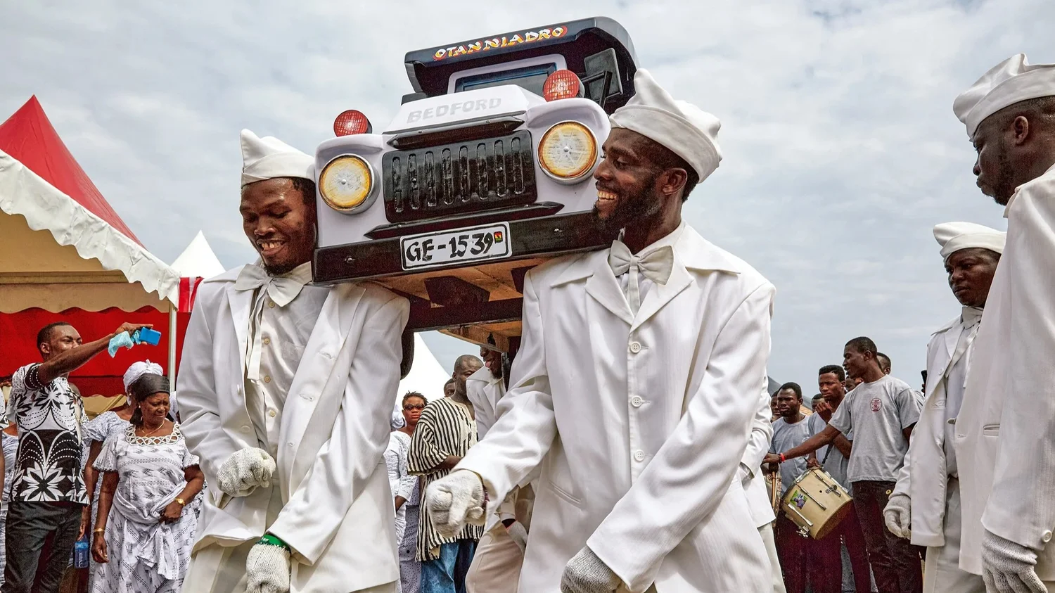 Em seu livro Buried in Style (Enterrado com Estilo), a antropóloga e fotógrafa suíça Regula Tschumi documenta as tradições funerárias de Gana, explorando como objetos rituais, caixões figurativos e práticas comemorativas traduzem o luto em forma, cor e memória coletiva. Por mais de vinte anos, Tschumi tem retornado ao sul de Gana, acompanhando a cultura funerária Ga-Adangme como um sistema vivo de imagens, símbolos e regras sociais.