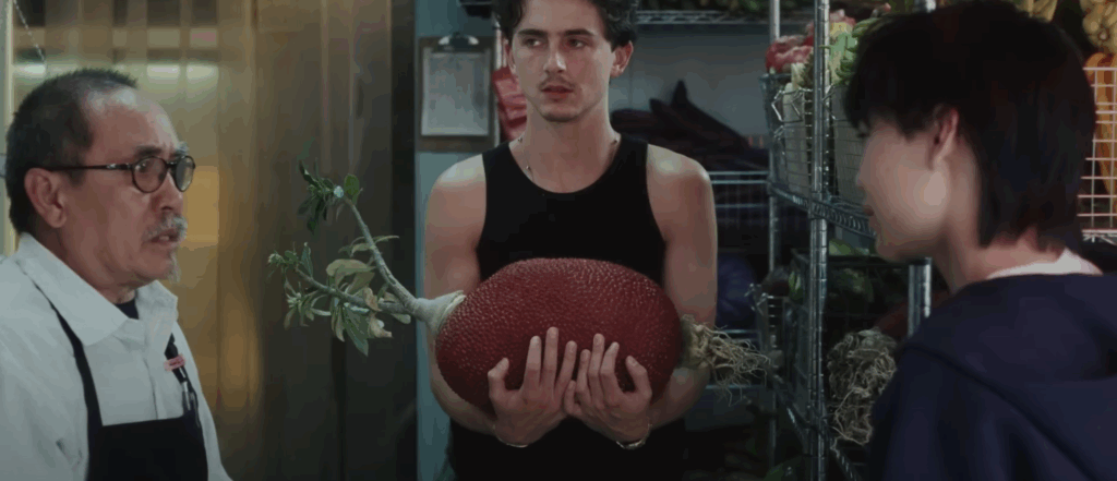 Na peça, ele visita uma hortifruti que vende vegetais raros e descobre algo peculiar: o proprietário só aceita formas de pagamento antiquadas. O filho adolescente do proprietário, interpretado por Izaac Wang, argumenta que essas moedas obsoletas não são as melhores para seu pai e oferece serviços bancários pelo Cash App como uma solução melhor e mais moderna. Timothée ajuda a facilitar o momento de transformação do lojista, que percebe que adotar ferramentas financeiras fáceis de usar não muda quem ele é ou seus valores. Destaque para uma estética bem peculiar.