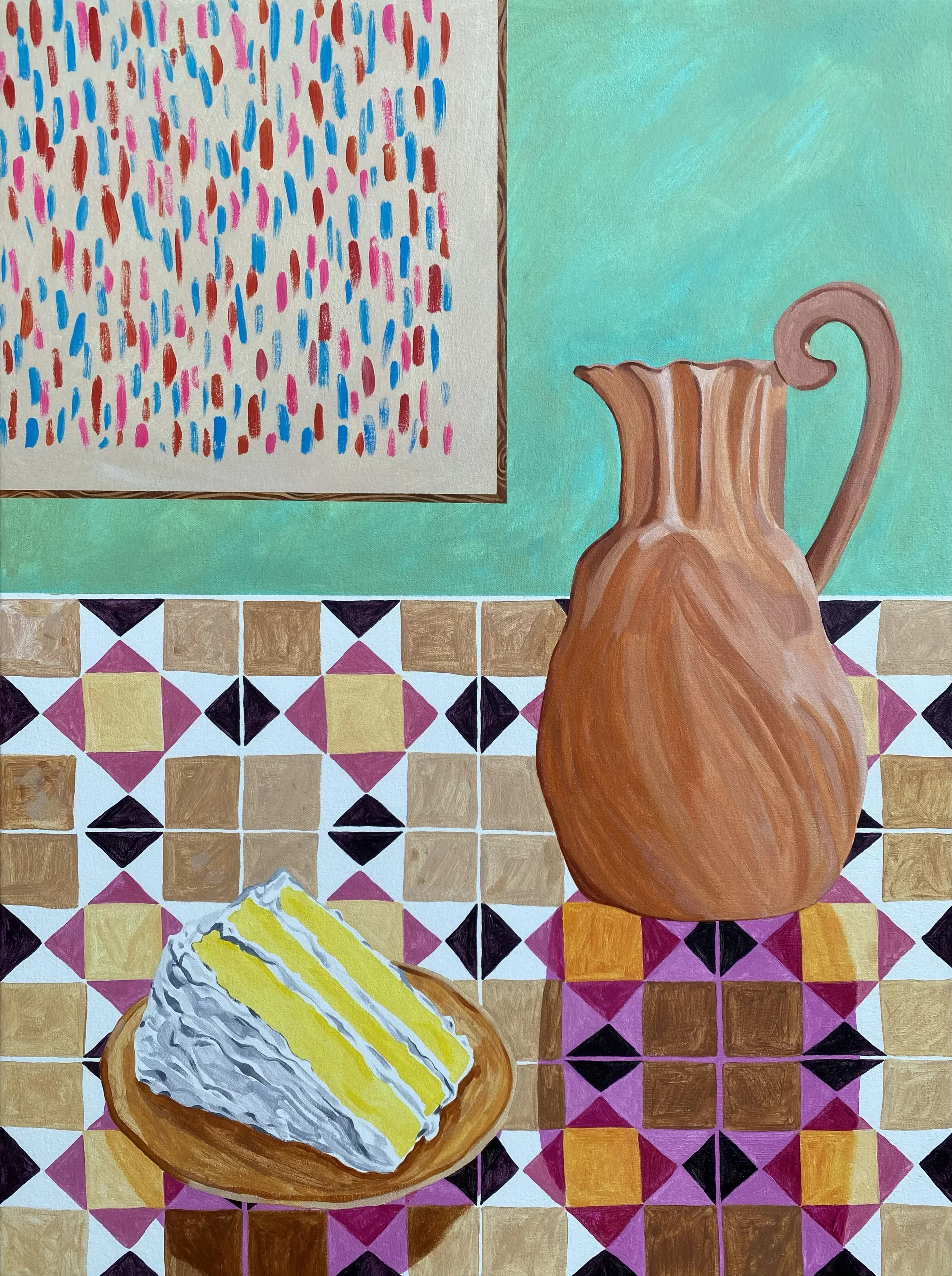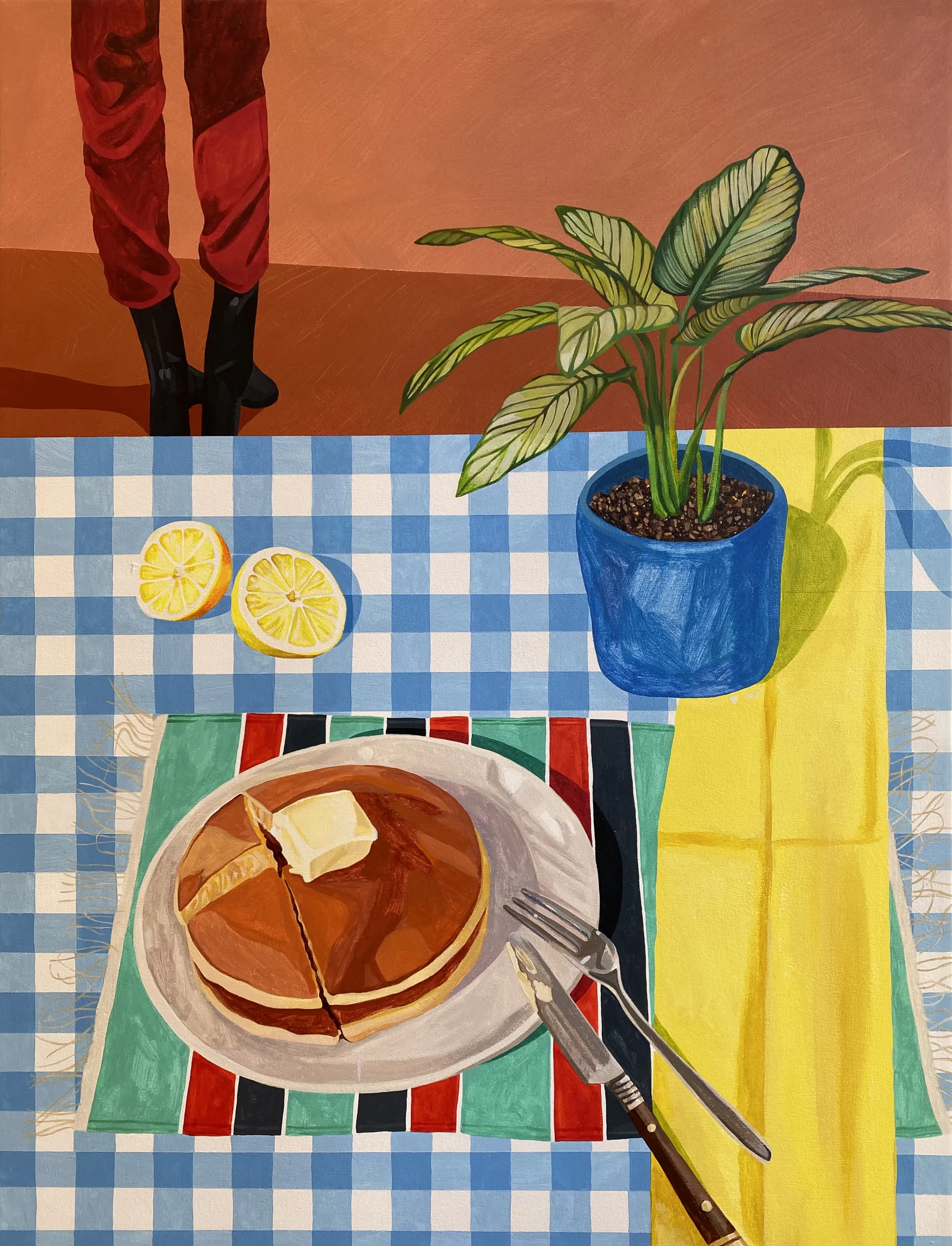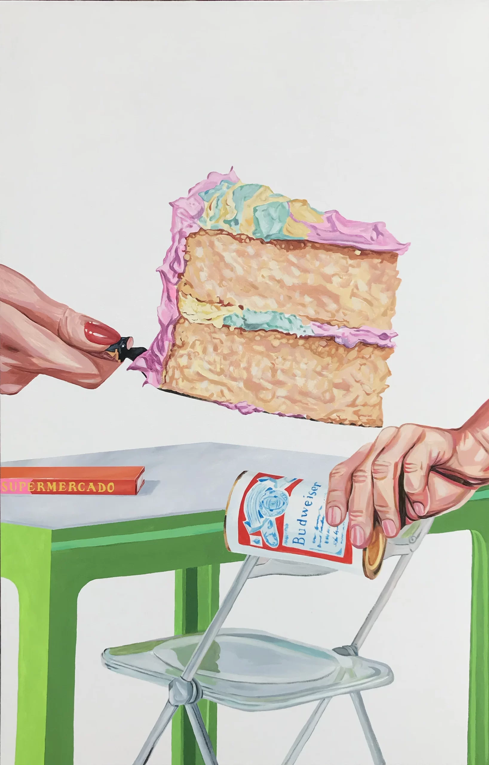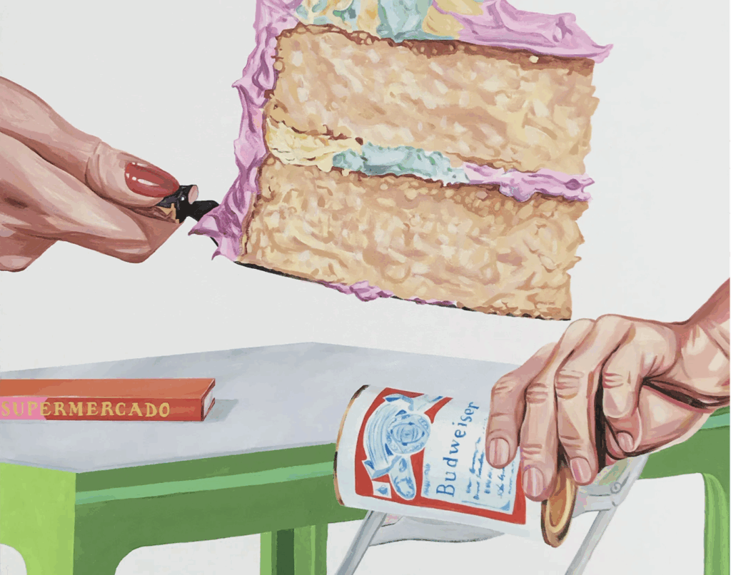 As cenas do cotidiano doméstico podem se tornar monótonas – plantas sempre paradas, uma embalagem de produto, um livro na mesa, panquecas com um pouco de manteiga, ou uma fatia de bolo de uma festa de aniversário que aconteceu há muito tempo. Mas a pintora nascida no Colorado, Sierra Montoya Barela, faz bom uso da mundanidade como tela para sugerir um novo olhar e criar uma nova vida.