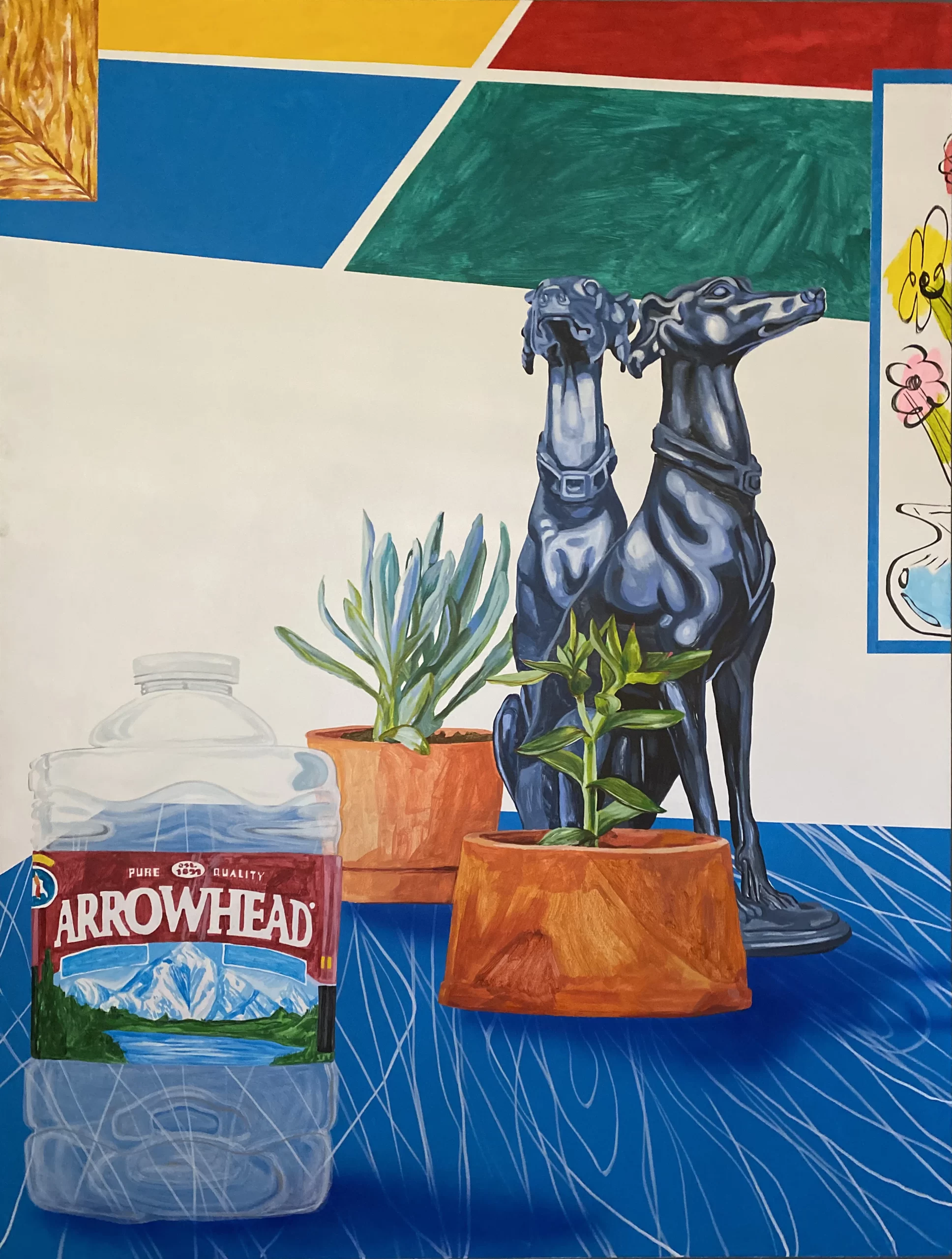 Sierra também trabalhou como designer de produtos de utensílios domésticos para a Urban Outfitters Home e, mais recentemente, para a West Elm Kids, uma loja de móveis em Dumbo, Nova York, o que transparece em sua paixão por pintar espelhos, prateleiras, vasos, cadeiras, mesas e assim por diante. Há um olhar curatorial para a composição, cores exageradas e padrões complexos que não têm medo de se chocar.